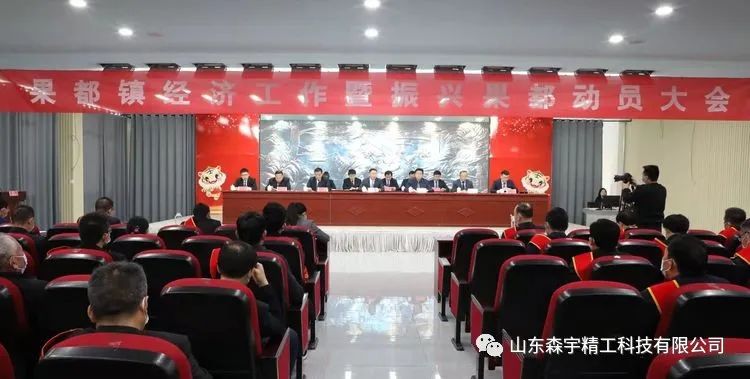 2022年2月23日,"果都鎮(zhèn)經(jīng)濟(jì)工作暨振興果都動員大會"在山東森宇精工科技有限公司奧士康新辦公樓多功能廳召開。