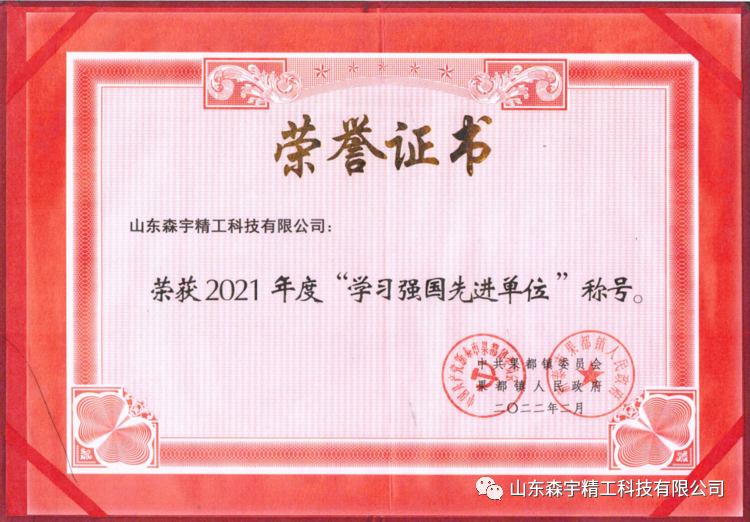 大會表彰了2021年度先進(jìn)單位和先進(jìn)個(gè)人,森宇精工榮獲2021年度納稅十強(qiáng)企業(yè)、2021年度項(xiàng)目建設(shè)先進(jìn)單位、2021年度安全生產(chǎn)工作先進(jìn)單位、2021年度學(xué)習(xí)強(qiáng)國先進(jìn)單位稱號。